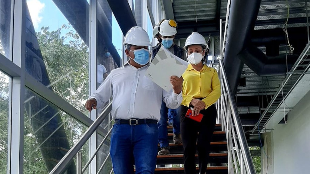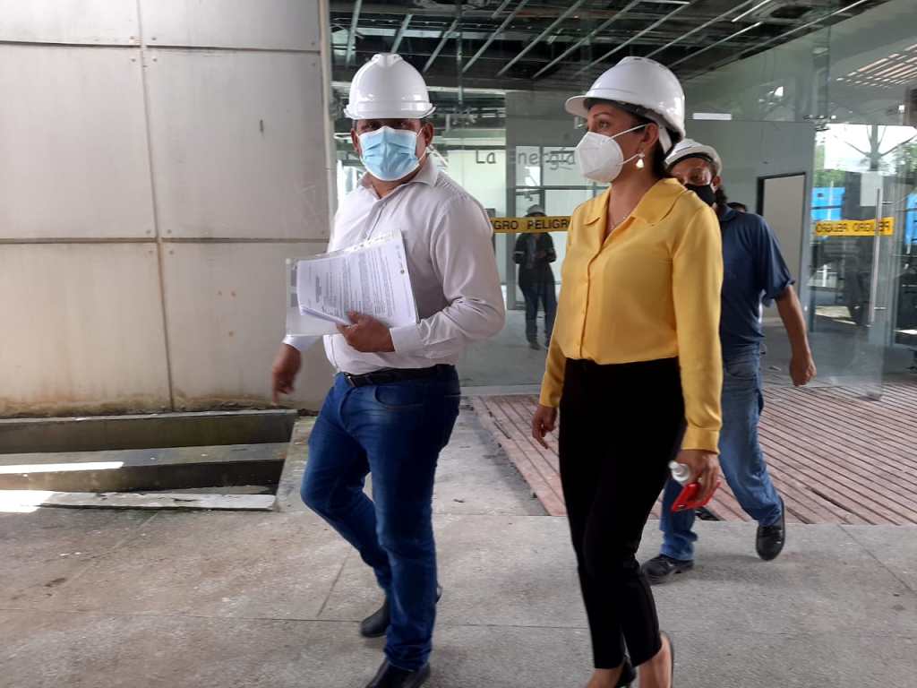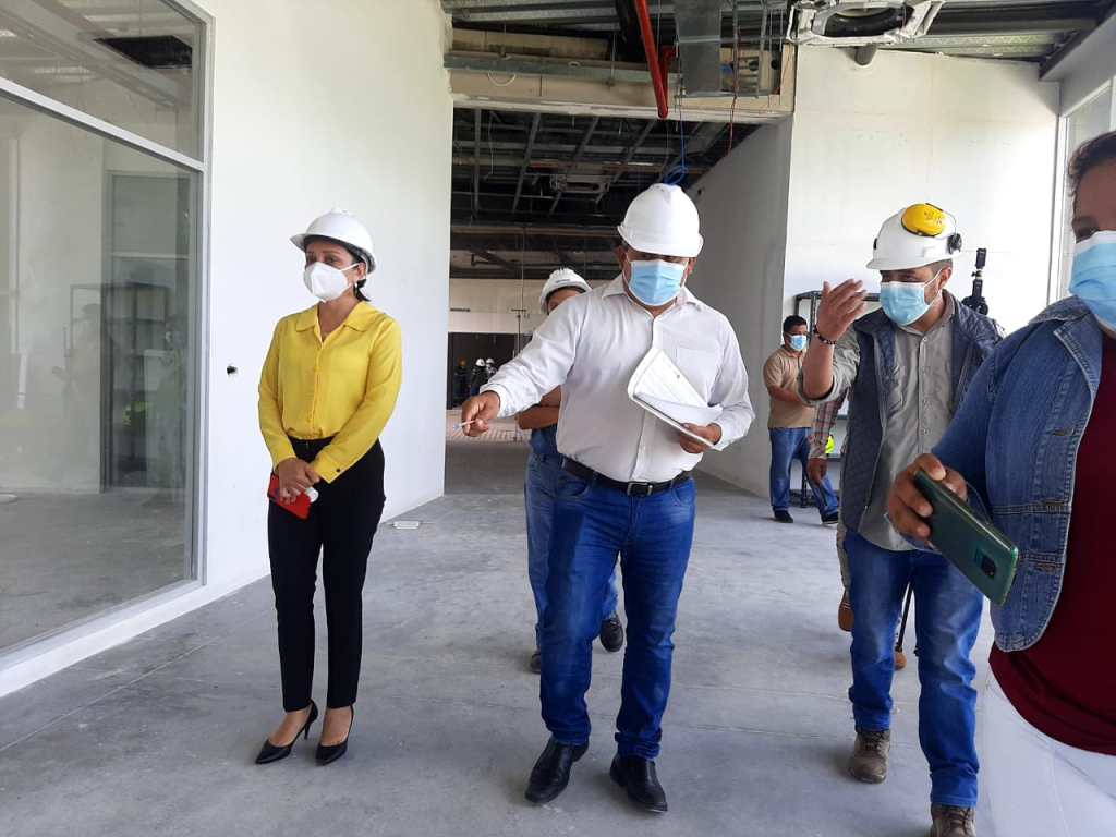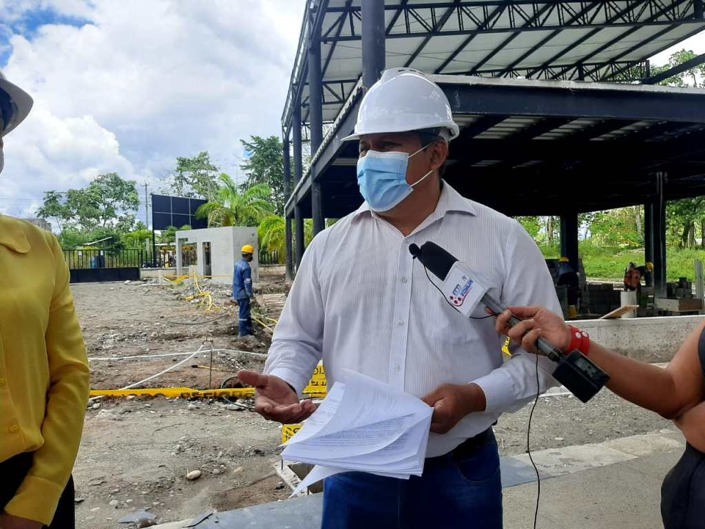 Deysi Jiménez rectora del Instituto Martha Bucaram acompañó al asambleísta Córdova en el recorrido para evidenciar el avance del proyecto, así como la contratación de mano de obra local para la ejecución de la misma, según lo establece la Ley Amazónica.