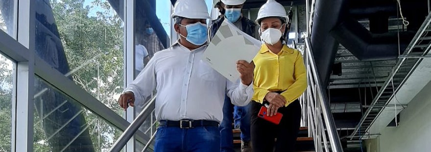 Deysi Jiménez rectora del Instituto Martha Bucaram acompañó al asambleísta Córdova en el recorrido para evidenciar el avance del proyecto, así como la contratación de mano de obra local para la ejecución de la misma, según lo establece la Ley Amazónica.