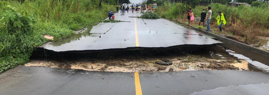 Las fuertes lluvias que afectan la ciudad de Nueva Loja provocaron que la vía que conduce al parque Perla colapsara debido a la erosión provocada por el agua de un estero del barrio el Cisne mismo que debilitó las bases de las alcantarillas causando su hundimiento y la destrucción de un tramo de la vía.