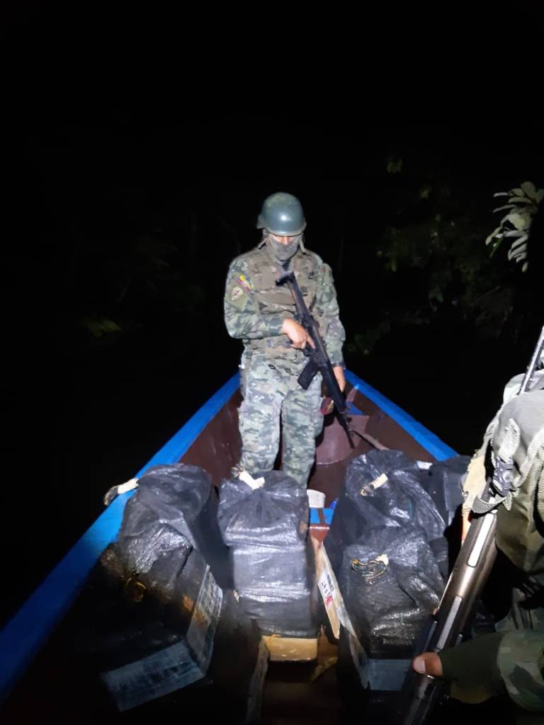 La noche del lunes 19 de abril, una patrulla del Ejercito Ecuatoriano decomisó media tonelada de sustancias sujetas a fiscalización (cocaína), en el sector Santa Marianita perteneciente a la parroquia General Farfán, cantón Lago Agrio, provincia de Sucumbíos.