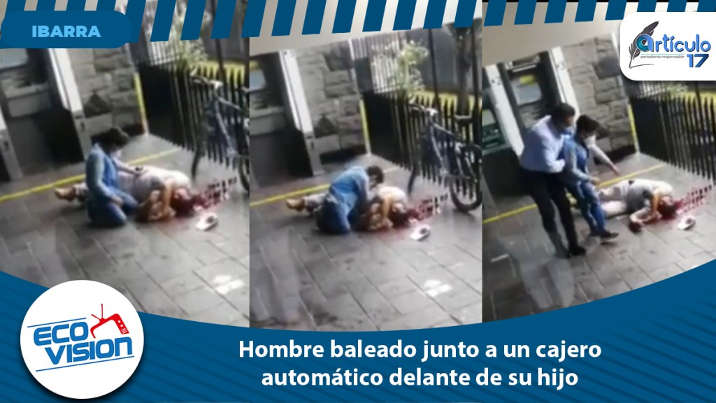 Un hombre fue baleado en los exteriores de un cajero automático de la ciudad de Ibarra, situado en la avenida Simón Bolívar y Obispo Mosquera. El hecho ha provocado indignación y conmoción en redes sociales luego de que se difundieran imágenes y videos donde se observa al hijo de la víctima que se lamenta sobre el cuerpo de su padre asesinado.