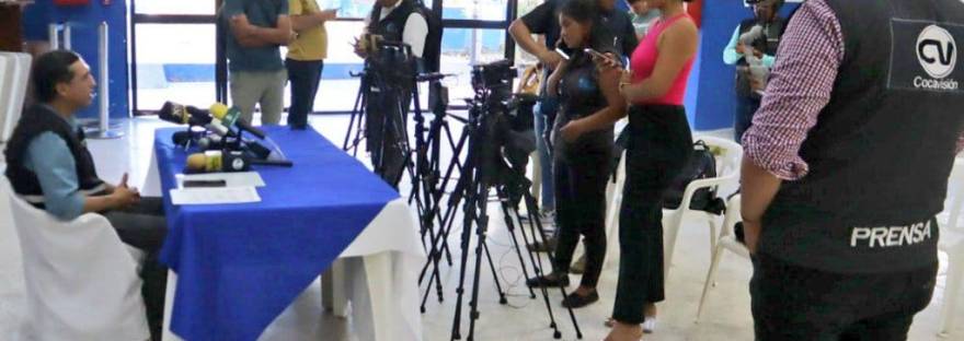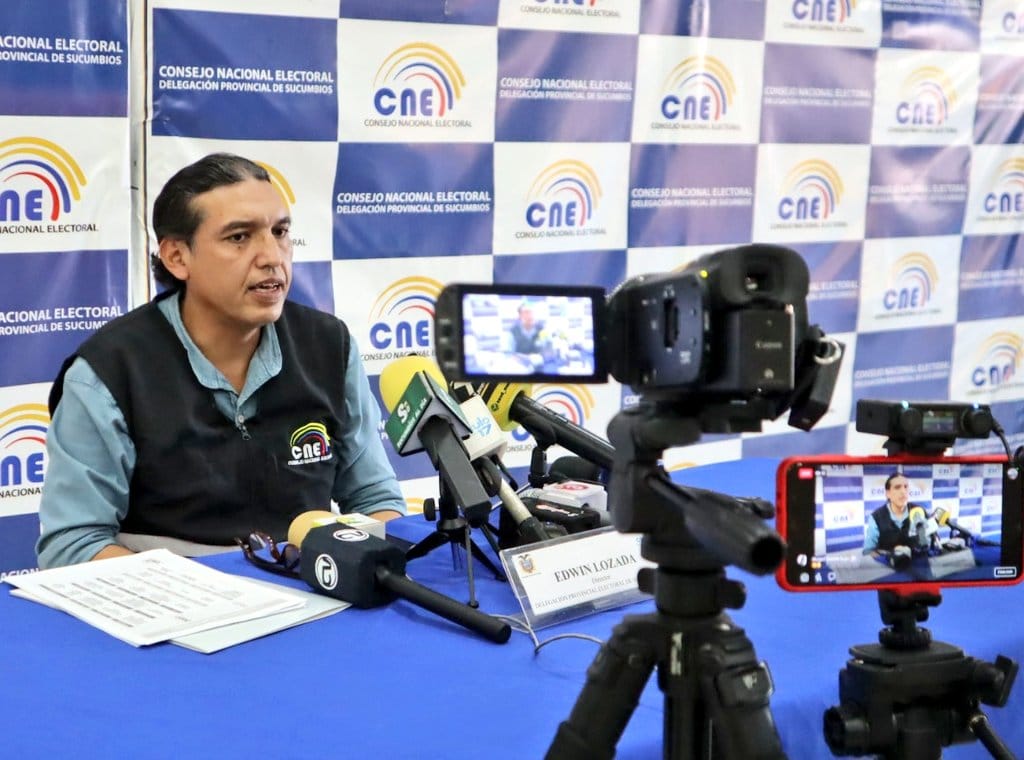 Rueda de prensa de la presentación del Ing. Edwin Lozada como nuevo delegado provincial del Concejo Nacional Electoral en Sucumbíos.