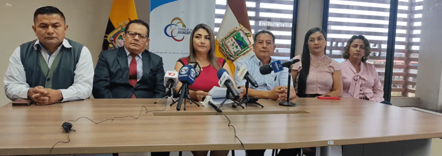 Rueda de prensa desde el Consejo de la Judicatura Sucumbíos, donde las autoridades judiciales dan a conocer los objetivos de la nueva gestión institucional y las necesidades estructurales del sistema de justicia.