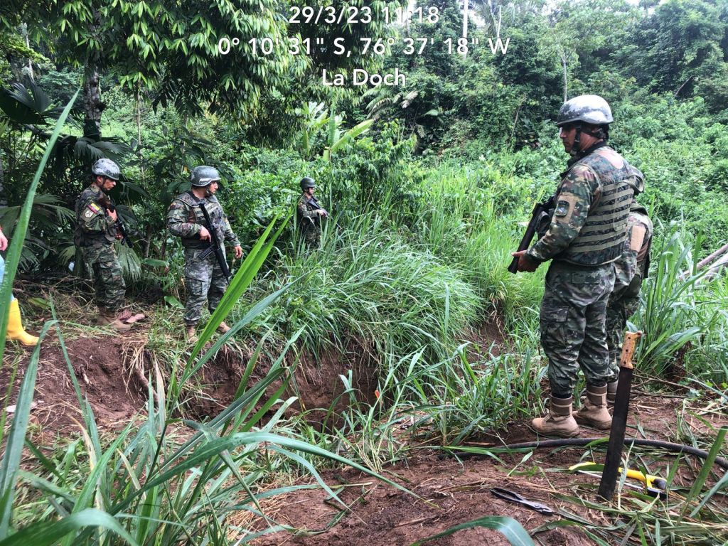 La Brigada de Selva 19 NAPO, a través de su Batallón de Operaciones Especiales en Selva 54 «Capt Calles», realizando un reconocimiento terrestre al Sistema Hidrocarburífero Nacional, en el sector #LA DOCH, perteneciente al cantón Shushufindi, se realizó el siguiente hallazgo: