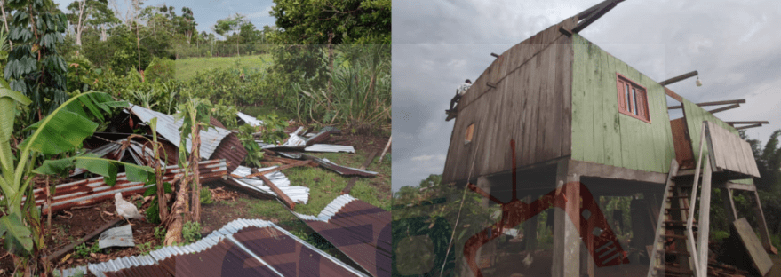 Viviendas afectadas por vientos huracanados en la parroquia General Farfán sector Patria Nueva vía la tairona.